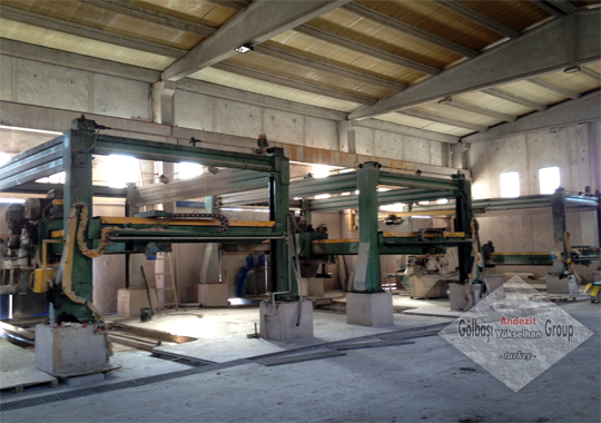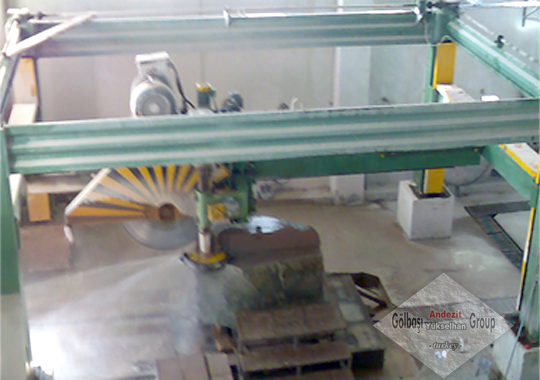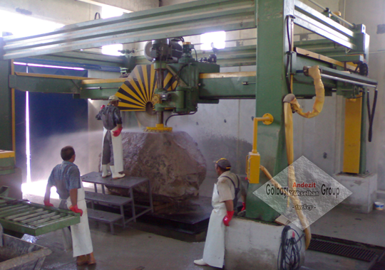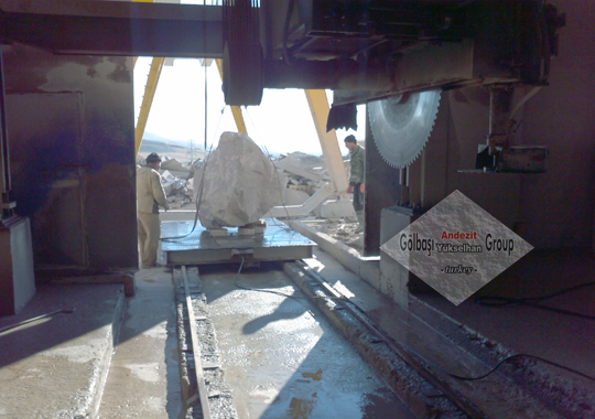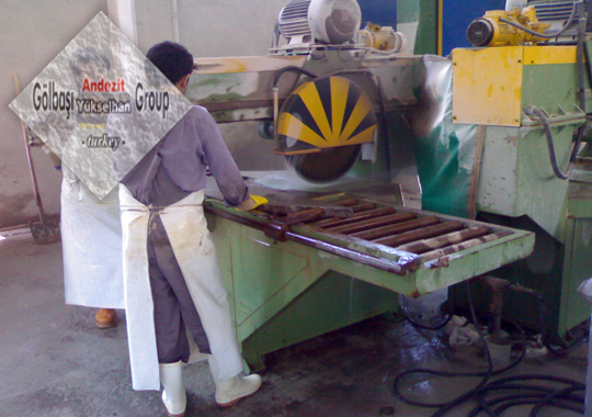 Başkesme makinası ile andezit boy olarak ebatlanır. |