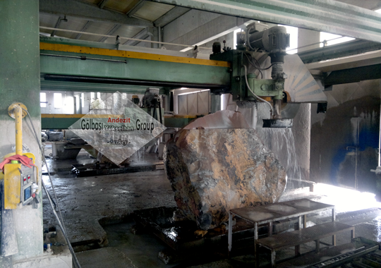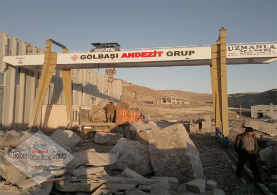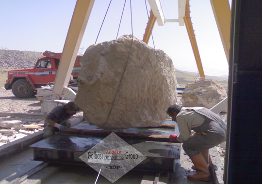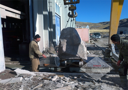 Andezit blok taşın işlenmek üzere Este makinasına alınışı |