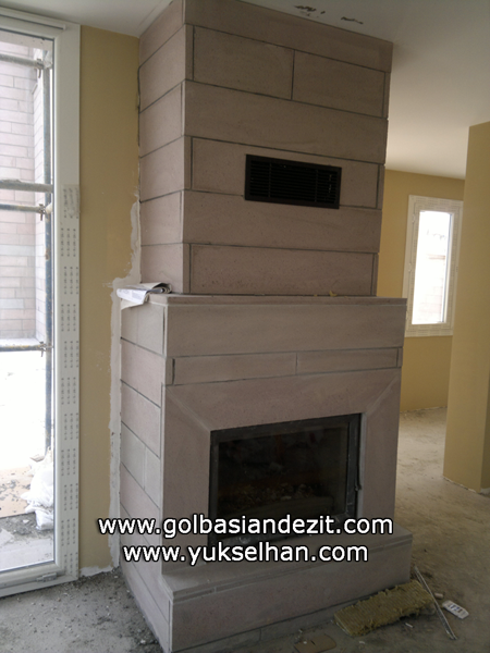 Andezit Duvar kaplaması ve Andezit Basamak Çalışması. Özel Çalışma - Bina çatısında Andezit Harpuşta ve Söve Andezit Şömine Uygulaması